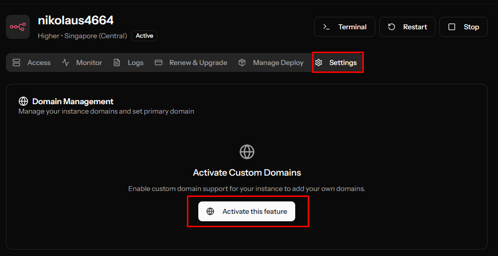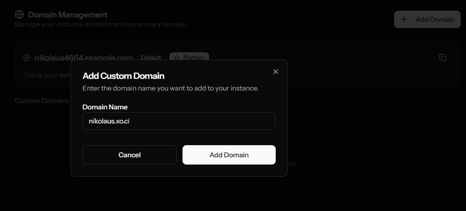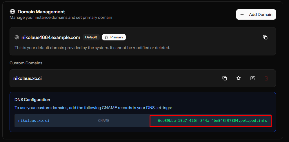 Value: The provided Petapod subdomain (e.g., "your-instance-id.petapod.info")